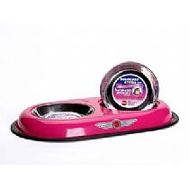 Ruoka- ja vesikuppisetti kissalle. Maalattua metallia. Väri punainen.